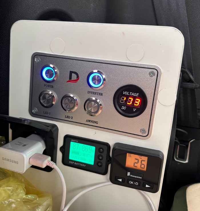 차량 한켠에는 컨트롤러가 설치되어 있어, 조명, 루프탑, 전기코드, 무시동 난방 등을 조절할 수 있습니다. 각 기능의 사용법은 차량 내부 곳곳에 QR코드로 설명되어 있어, 쉽게 따라 할 수 있습니다.