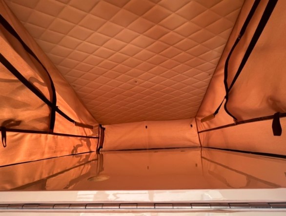 루프탑 내부는 크지는 않지만, 한 명이 자기에 충분한 공간을 제공합니다. 창문도 열 수 있어, 바깥 풍경을 감상하며 누워 있을 수 있습니다. 단, 바닥을 닫고 누우면 나가기가 조금 불편할 수 있습니다.