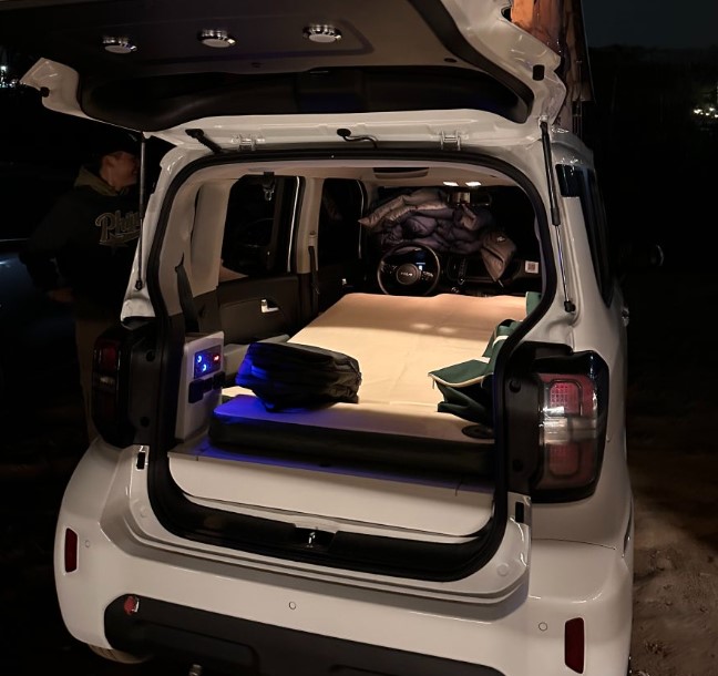 쏘카 캠핑카에서 가장 좋았던 점 중 하나는 조명 시스템이었습니다. 트렁크 문을 열고 불을 켜면 밝아지고, 낮에는 그늘을 제공하여 매우 유용했습니다. 야외 활동 시 빛이 필요한 상황에서 큰 도움을 받았습니다.