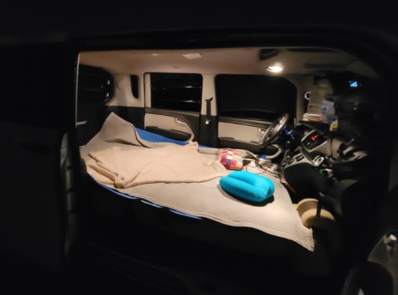 쏘카 캠핑카 레이를 처음 봤을 때 느낀 점은, 외관이 작고 아담하다는 것이었습니다. 하지만 내부에 캠핑에 필요한 다양한 장비들이 잘 갖춰져 있어 알찬 구성이라는 인상을 받았습니다. 차 안에는 에어매트와 테이블, 조명 등 필요한 모든 것이 구비되어 있었습니다.