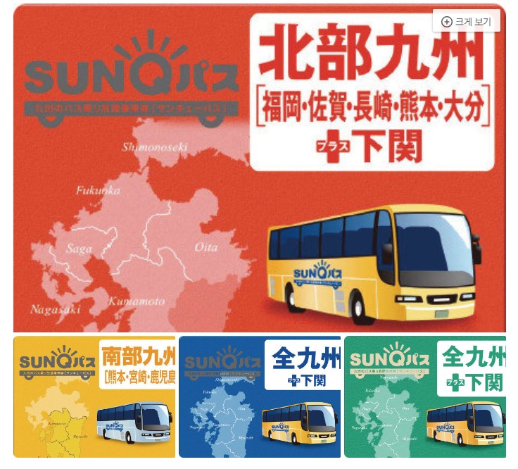 큐슈 지역의 시내 및 시외 버스 2400개 노선을 무제한으로 이용할 수 있는 패스입니다. 큐슈 지역을 여행할 계획이라면 이 패스로 큰 이득을 볼 수 있습니다. 총 3가지 종류가 있으며, 대부분 북큐슈 산큐패스 2일권을 많이 사용합니다.