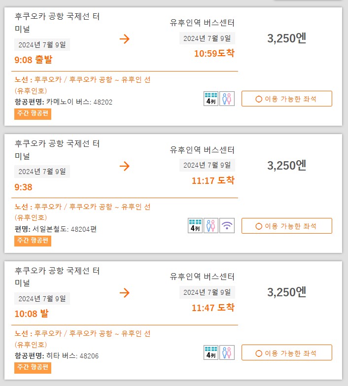 유후인과 벳푸를 가신다면 버스를 이용하는 것이 효율적입니다. 후쿠오카 시내로 들어가지 않고 공항에서 바로 이동할 수 있으며, 패스도 공항에서 받을 수 있어 여행 시 시간을 효율적으로 사용할 수 있습니다. 미리 준비하여 교통편을 확보하고