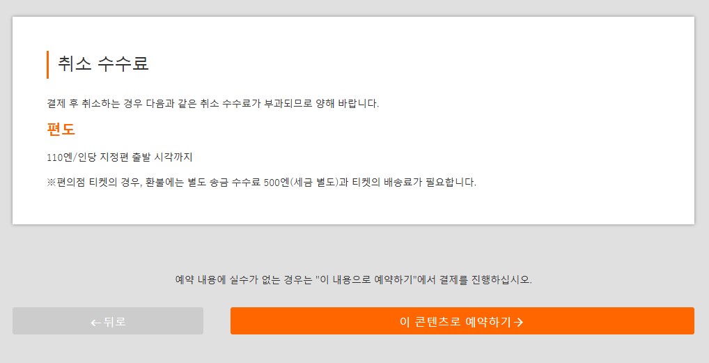 5. 예약내용 확인 후 결제 방법 선택에서 창구 또는 버스 차내 지불을 선택합니다.