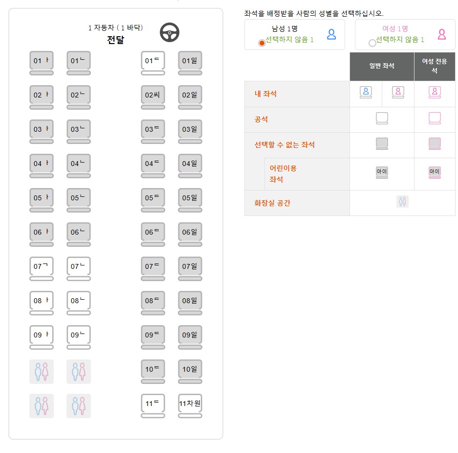 4. 탑승 시간, 왕복/편도를 선택하고 좌석을 지정한 뒤 개인정보를 입력합니다.