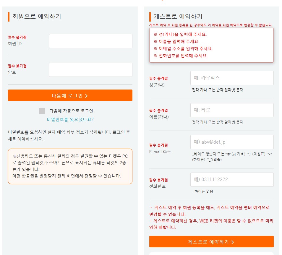 게스트로 예약 시 성과 이름은 영어로 입력해야 합니다.