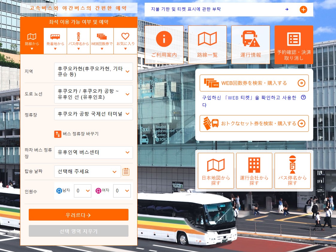 큐슈 고속버스센터에 전화로 예약할 수 있으며, 한국어 직원도 있어 편리합니다.