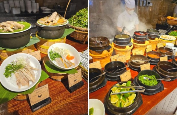 베트남 전통 음식 코너에서는 반미, 쌀국수, 분짜 등 현지 음식을 즐길 수 있습니다. 신선한 허브와 야채가 곁들여져 있어 베트남의 맛을 그대로 느낄 수 있습니다.