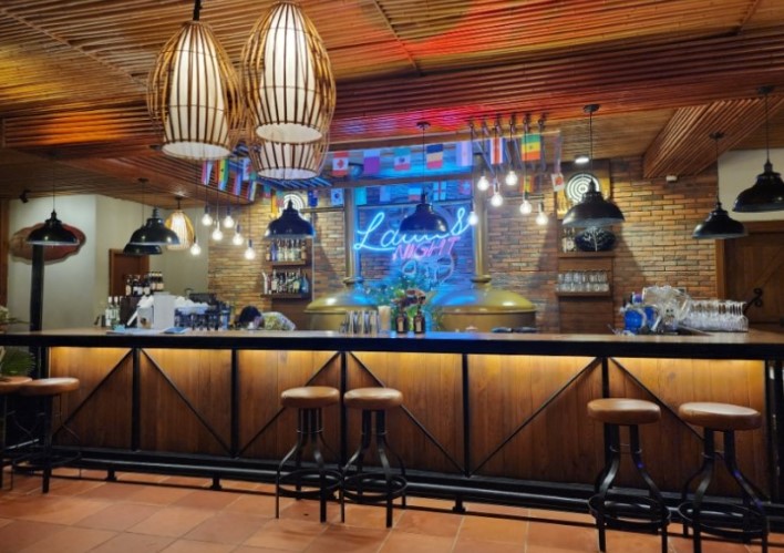 라군 레스토랑은 키즈풀 뒤쪽에 위치한 반짝이는 건물로, 멋진 조명과 함께 아름다운 분위기를 자랑합니다. 칵테일바처럼 앉을 수 있는 카운터석과 야외석이 마련되어 있어, 특히 야경이 아름다운 빈원더스 관람차를 바라보며 식사할 수 있습니다.