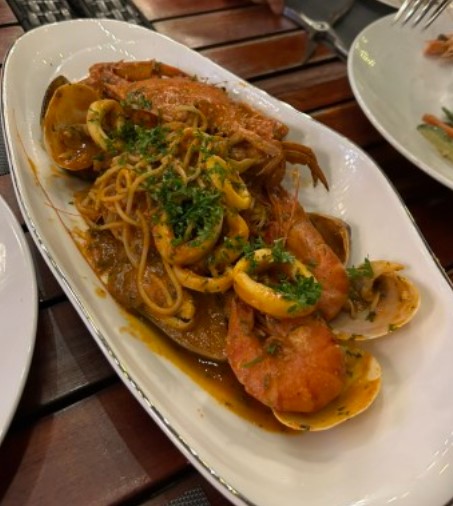 새우, 홍합, 오징어 등 다양한 해산물이 들어가 있으며, 신선한 토마토 소스와 어우러져 깊고 풍부한 맛을 자랑합니다. 해산물의 신선함과 토마토 소스의 조화가 환상적입니다.