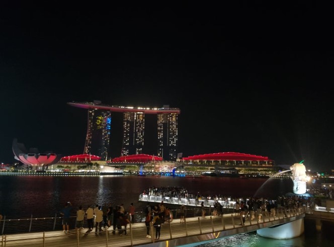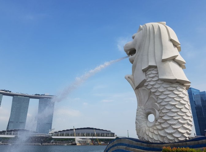 싱가포르 하면 가장 먼저 떠오르는 곳, 바로 머라이언 파크입니다. 반은 사자 머리, 반은 물고기 몸을 가진 머라이언 상이 있는 곳인데요, 싱가포르의 상징적인 장소라서 많은 사람들이 이곳에서 사진을 찍고 있었습니다.