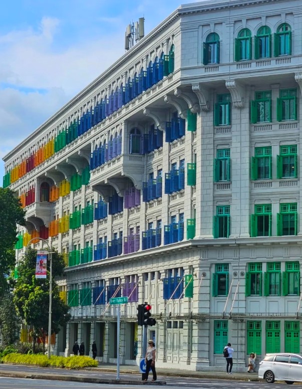 싱가포르 여행 중에 꼭 방문해야 할 장소 중 하나인 올드 힐 스트리트 경찰서를 방문했습니다. 이곳은 알록달록한 창문들로 유명한 건물로, 인스타그램 등 SNS에서 인기 있는 사진 촬영 장소입니다. 경찰서로 사용되던 건물이라 생각보다 규모가 컸으며, 다양한 색상의 창문이 인상적이었습니다.