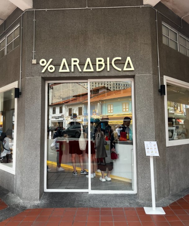 아랍 스트리트를 돌아다니다 보면, '응커피'라고 불리는 % 아라비카 커피숍을 발견할 수 있습니다.