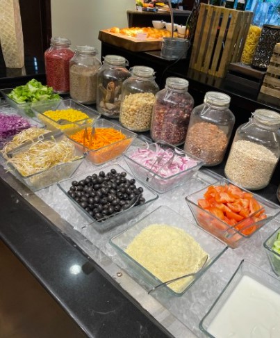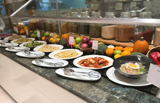 조식 뷔페에는 다양한 신선한 과일과 샐러드 바도 준비되어 있습니다. 계절 과일과 함께 요거트, 그라놀라 등을 곁들여 건강한 아침을 시작할 수 있습니다. 샐러드 바에는 각종 신선한 채소와 드레싱이 준비되어 있어 취향에 맞게 샐러드를 만들어 먹을 수 있습니다.