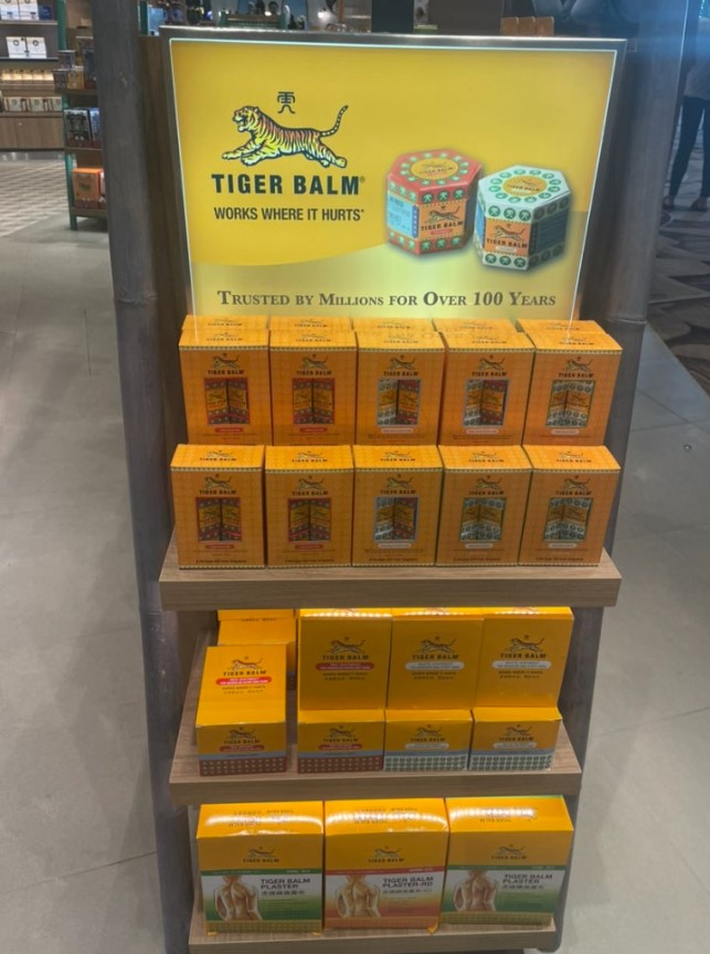 타이거밤은 창이공항에서 손쉽게 구할 수 있는 인기 상품 중 하나입니다.