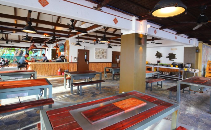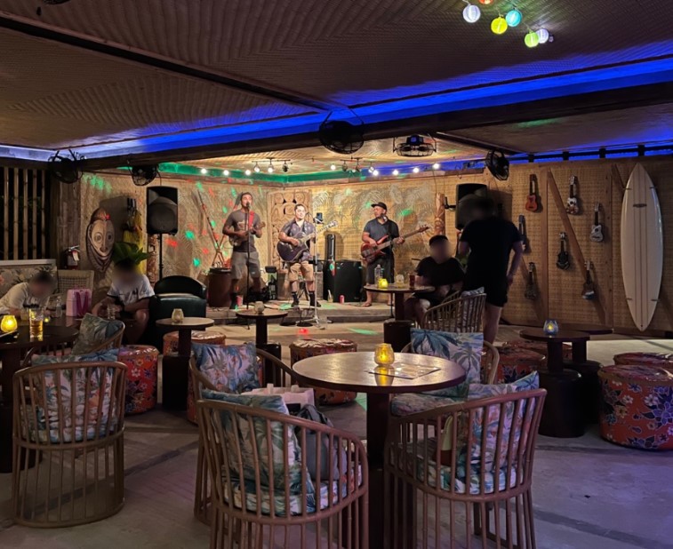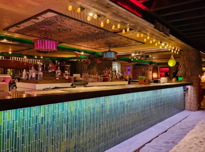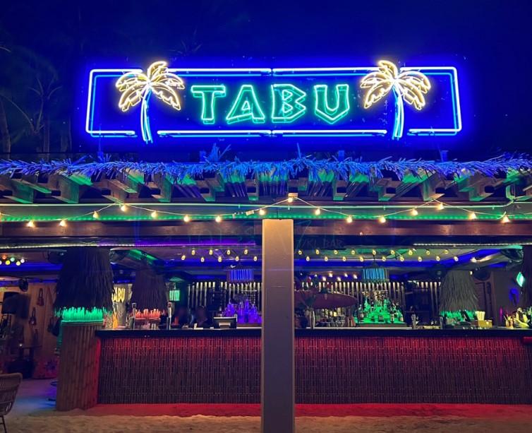 타부 티키 바는 해변가 모래사장을 그대로 바닥으로 이용해 자연과 하나 되는 느낌을 줍니다. 안쪽에는 테이블과 의자가 배치되어 있고, 앞쪽으로는 그네 의자와 테이블이 있습니다. 빈백 자리도 많이 있어 커플이나 부부들이 시간을 보내기에 좋은 장소입니다.