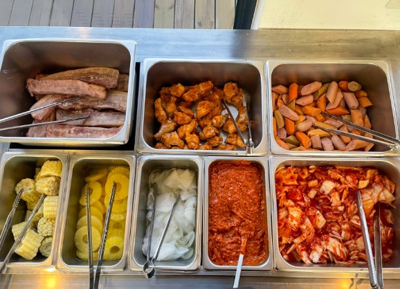 부산 근교 글램핑으로 좋은 사천글램핑에는 바베큐 무한리필이 제공됩니다. 매점도 함께 운영하고 있어 과자류, 아이스크림, 각종 음료를 구입할 수 있습니다. 무한제공 세트에는 훈제초벌삼겹살, 닭봉, 소시지, 김치, 옥수수, 채소, 쌈장, 참기름, 소금, 버터, 쌈무, 파인애플 등이 포함되어 있습니다.