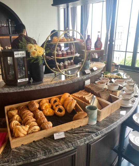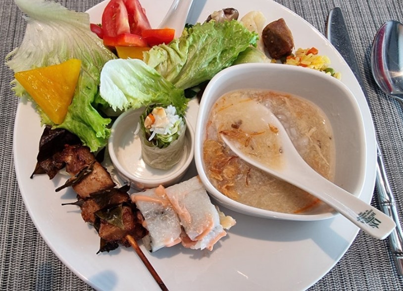 조식은 뷔페 형식으로 제공되며, 쌀국수와 오믈렛은 스태프에게 주문하면 즉석에서 만들어 줍니다.