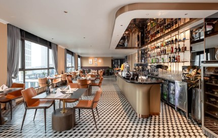호텔의 조식당은 고층에 위치해 있어, 창문 너머로 하노이 도심의 전경을 감상할 수 있습니다.