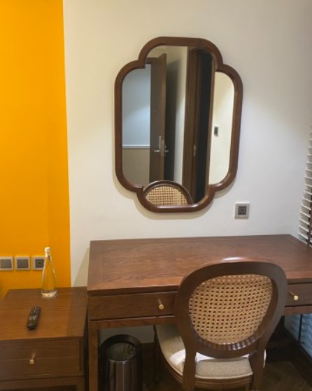 샤워가운과 슬리퍼 같은 기본 편의 시설이 잘 갖춰져 있으며, 거울과 가구는 현대적인 감각으로 꾸며져 있어 사진을 찍어 추억을 남기기에도 좋습니다.