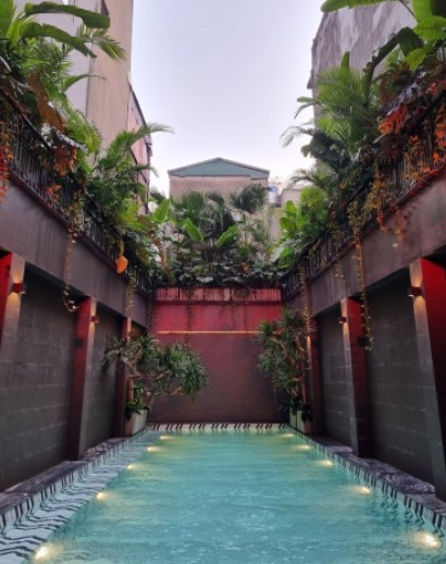 호텔의 1층 가장 안쪽에는 실외 수영장이 자리하고 있습니다. 하노이 호안끼엠 지역의 호텔 중 수영장이 있는 곳이 많지 않은데, 라 시에스타 항 퉁 호텔은 이 작은 공간에서도 수영이 가능하도록 예쁘게 수영장을 잘 만들어 놓았습니다.