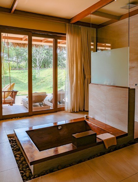 자쿠지에서 멋진 뷰를 바라보며 아침저녁으로 스파를 즐길 수 있었습니다. 덕분에 몸이 보드라워지면서 노곤해져 그간 쌓였던 피로도 모두 물에 녹아내려 개운한 여행을 즐길 수 있었습니다. 샤워부스도 따로 마련되어 있어 수압이 적당하고 따뜻한 물도 잘 나와 욕실을 이용하면서 불편한 부분이 전혀 없었습니다.