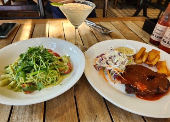 소고기 스테이크, 연어 스테이크, 볶음밥 등 다양한 메뉴가 있으며, 퓨전 스타일이지만 맛은 괜찮아 저녁 식사 장소로 추천할 만합니다. 나트랑 여행을 마무리하는 저녁 식사 장소로 선택하기에 좋은 곳입니다.