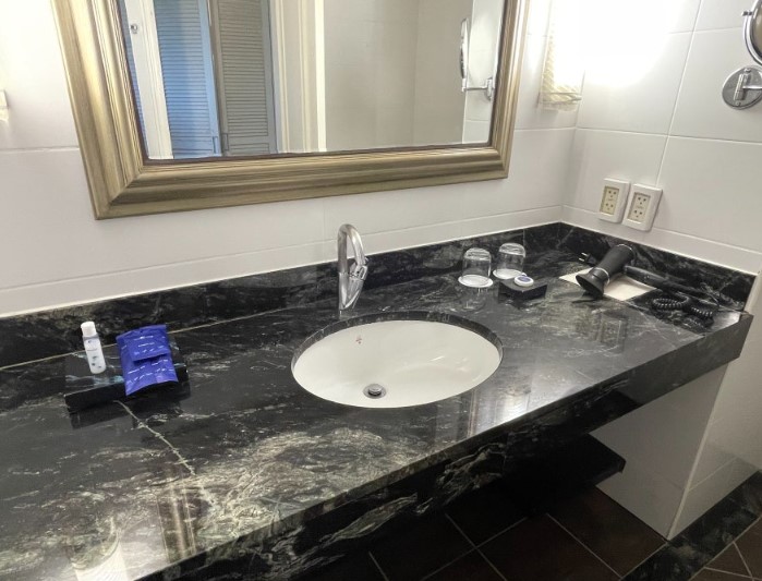 욕실은 세면대와 욕조가 잘 정리되어 있었고, 물도 잘 나왔습니다. 샤워와 간단한 목욕을 하는 데 불편함이 없었고, 세면대와 욕조 상태도 매우 깨끗했습니다. 샤워를 마친 후에는 편안하게 몸을 풀 수 있는 욕조도 있었지만, 일정이 바빠서 실제로 욕조를 사용할 시간은 많지 않았습니다.