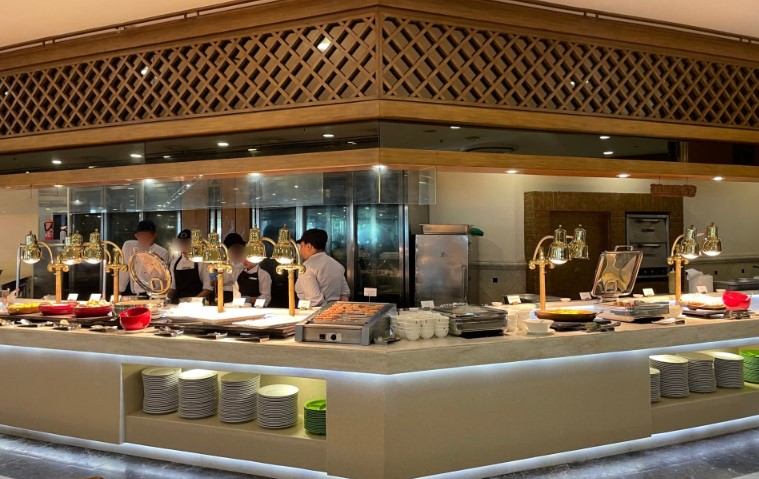 제이파크 리조트의 조식은 1층 레스토랑에서 아침 6시부터 10시까지 제공됩니다. 저희는 7시 30분쯤 조식을 먹으러 갔는데, 이때부터 슬슬 붐비기 시작하더라고요.