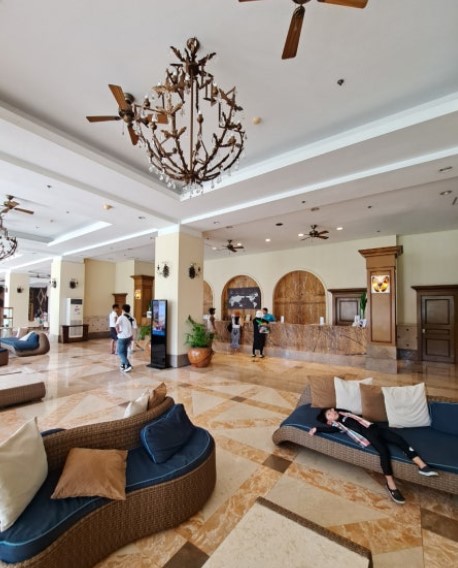 5성급 리조트인 만큼 제이파크의 외관은 깔끔하고 고급스러운 느낌이었어요. 로비에 들어서자마자 느껴지는 이국적인 휴양지의 감성이 마음을 설레게 했습니다. 로비는 넓고 쾌적했으며, 휴식을 취하기에 아주 좋은 분위기였습니다. 특히 이곳은 아이들을 동반한 가족 여행객들에게 적합한 숙소로 유명한데, 그 이유를 도착하자마자 알 수 있었습니다.