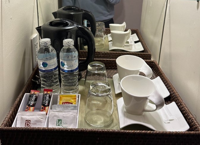 객실에는 생수와 커피, 티가 기본으로 제공되며, 리필도 가능합니다. 간단한 음료를 즐기기 좋고, 특히 아침 커피 한 잔은 여행의 피로를 풀어주기에 충분했습니다.