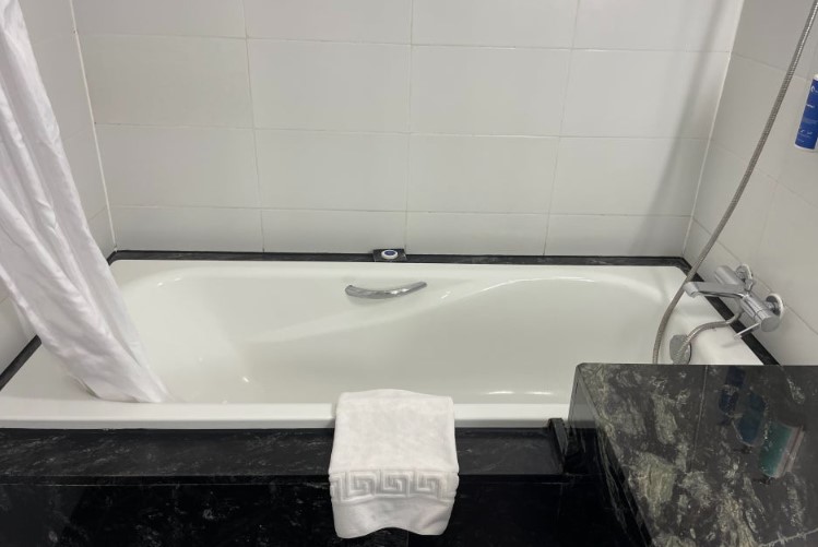 욕실은 세면대와 욕조가 잘 정리되어 있었고, 물도 잘 나왔습니다. 샤워와 간단한 목욕을 하는 데 불편함이 없었고, 세면대와 욕조 상태도 매우 깨끗했습니다. 샤워를 마친 후에는 편안하게 몸을 풀 수 있는 욕조도 있었지만, 일정이 바빠서 실제로 욕조를 사용할 시간은 많지 않았습니다.