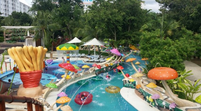 제이파크 리조트는 그 자체로 하나의 거대한 놀이터입니다. 리조트 내부에는 다양한 풀장이 있어 가족 단위 여행객들이 즐기기에 충분합니다. 가장 큰 메인풀은 아일랜드 풀로, 유선형의 넓은 수영장입니다.