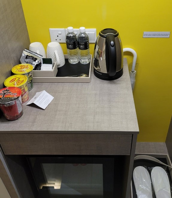 가성비 호텔이라고 해서 필요한 것들이 없을까 봐 걱정할 필요는 전혀 없었어요. 스탠튼 시티 호텔은 에어컨, 와이파이, 전기포트, 옷걸이, 헤어드라이어, 냉장고 등 기본적인 편의시설이 잘 갖춰져 있었습니다. 심지어 일회용 슬리퍼와 무료 생수 2병도 제공돼서 편리하게 사용할 수 있었죠.