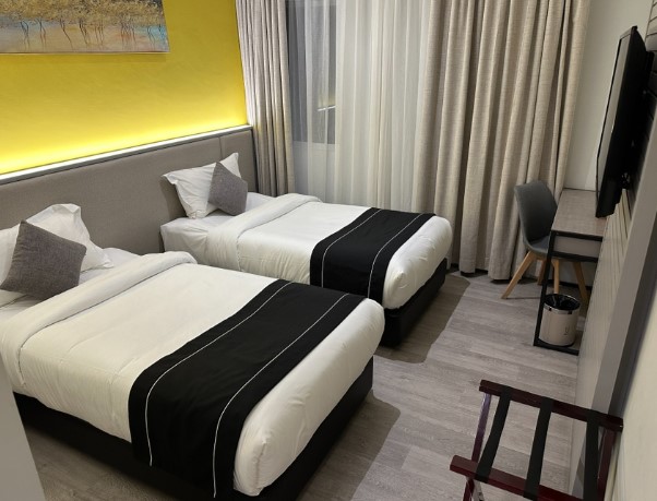 스탠튼 시티 호텔에 도착해 체크인을 마치고 방에 들어갔을 때, 가장 놀라웠던 건 방의 넓이와 깔끔함이었어요. 저는 슈페리어 트윈룸에 묵었는데, 방의 크기가 생각보다 훨씬 넓어서 캐리어를 여유롭게 펼칠 수 있었습니다. 특히 침대 앞에 넓은 공간이 있어서 여행 짐을 정리하기에도 좋았고, 침대 자체도 편안해서 긴 여행의 피로를 풀기에 부족함이 없었어요.