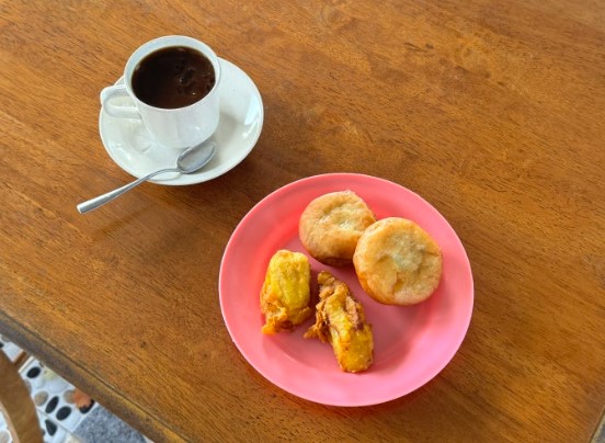 반딧불 투어가 시작되기 전에 간단한 간식이 제공됩니다. 여행 도중에 배가 고플 수 있으니 이 간식 타임은 매우 유용합니다. 연유 커피와 바나나튀김 같은 현지 간식이 준비되어 있어, 투어를 시작하기 전에 허기를 달랠 수 있습니다.