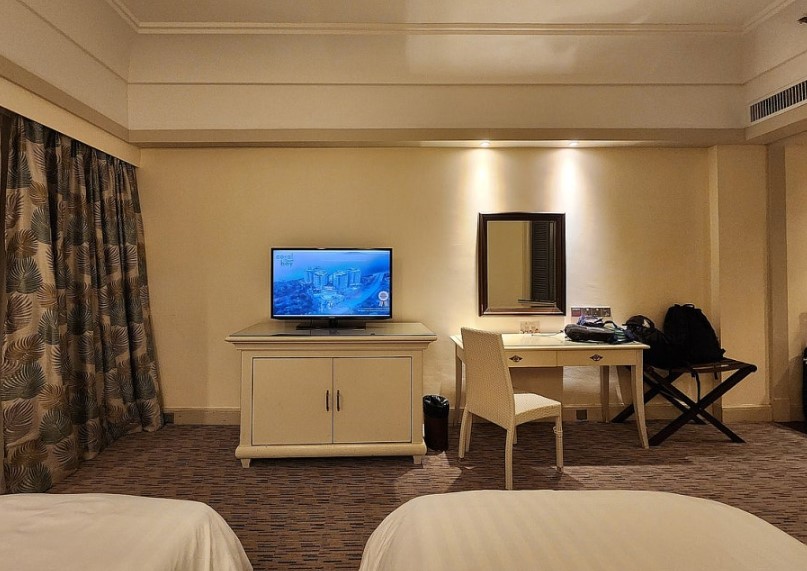 실에는 싱글 침대 두 개와 함께 독특한 문양의 리클라이너 소파가 있어 휴식을 취하기에 충분했습니다. 객실 안쪽에는 발코니도 있었는데, 아침과 저녁으로 발코니에서 바라보는 동남아의 하늘과 풍경은 정말 멋있었습니다.