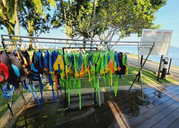 수영장 주변에는 안전을 위한 구명조끼와 튜브 같은 시설도 잘 준비되어 있어 물놀이를 즐기려는 분들에게는 안성맞춤이었습니다.