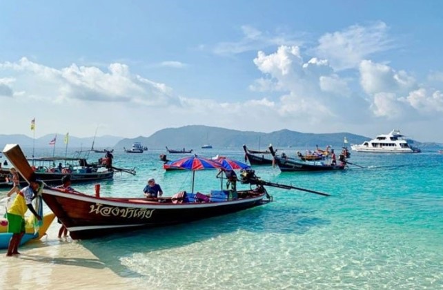 아침 9시쯤 리조트에서 출발해 선착장에 도착한 후, 스피드보트를 타고 푸켓 근처의 작은 섬인 바나나 비치로 향했습니다. 이곳의 해변은 맑고 깨끗한 물로 유명한데, 실제로 보니 더 아름다웠습니다.