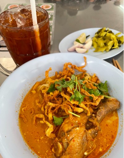 카오쏘이는 코코넛 커리 국물에 계란 국수가 들어간 요리로, 현지에서 꼭 먹어봐야 할 음식 중 하나예요. 치앙마이에서만 맛볼 수 있는 이 특별한 요리로 여행을 마무리할 수 있어 행복했어요.