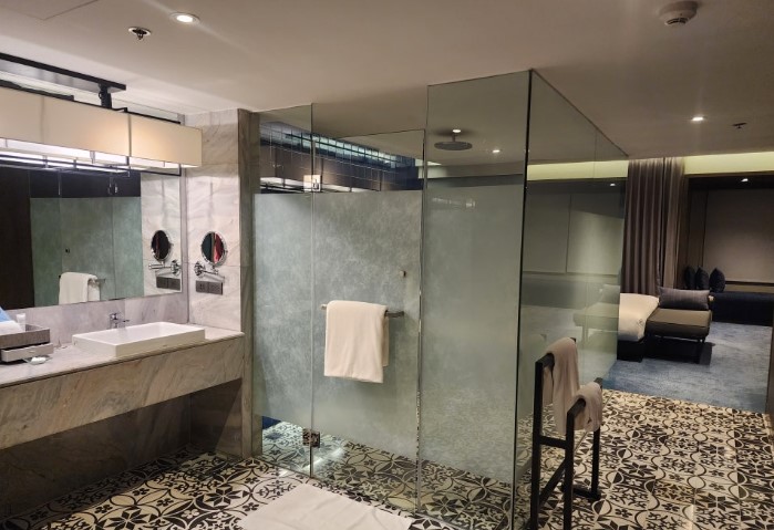 패밀리 스위트룸에는 두 개의 화장실이 있으며, 각 화장실은 세면대와 샤워실이 구분되어 있어 편리합니다.