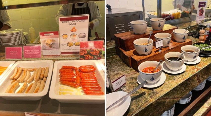 실내에는 다양한 음식들이 준비되어 있지만, 야외에는 국수와 계란 요리 코너가 마련되어 있습니다. 이곳은 푸드트럭 느낌의 조식 코너로, 국수와 계란 요리를 현장에서 조리하여 제공합니다.