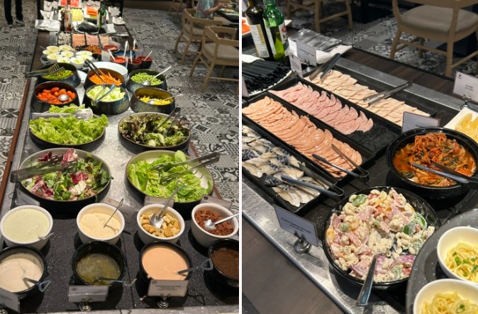 조식 메뉴에서 특히 추천하는 것은 다양한 국수 요리와 국물 요리입니다. 치킨 쌀국수, 오뎅 쌀국수, 돼지 쌀국수는 매일 바뀌는 메뉴로, 모두 맛이 좋습니다.