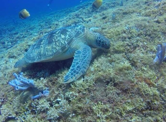 첫 번째 스노클링 스팟인 길리 메노에서는 맑고 깨끗한 물속에서 수많은 열대어들과 함께 수영할 수 있었습니다. 하지만 이번에는 특별한 행운이 저를 기다리고 있었으니, 바로 거북이를 만난 것입니다.