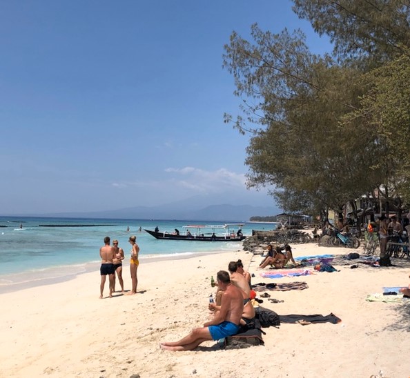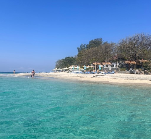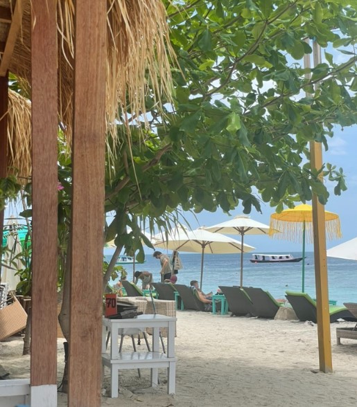 길리 아이리는 점심 식사를 위해 잠시 섬에 들른 곳입니다. 길리 아이리는 그야말로 평화로운 분위기를 자아내는 곳으로, 하얀 모래와 맑은 바다, 그리고 섬의 고요함이 마치 지상낙원에 온 듯한 기분을 느끼게 해주었습니다.