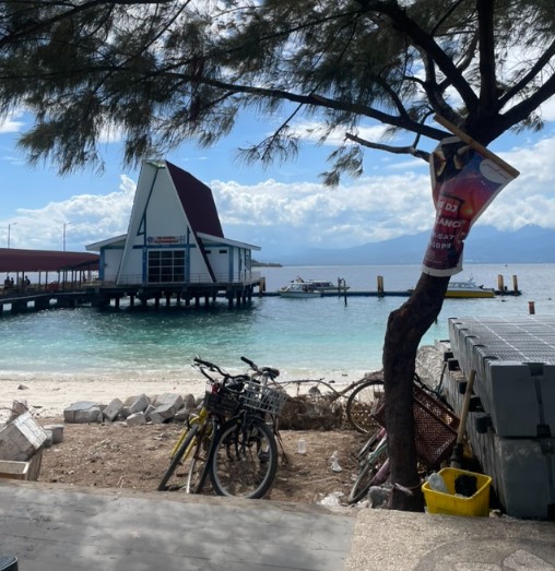 선착장에 도착하니 우리의 이름을 들고 있을 아저씨들이 보이지 않아 잠시 당황했지만, 결국 선착장 안쪽에서 우리를 기다리고 있는 걸 발견했어요. 길리섬을 처음 방문하는 여행객이라면 이런 소소한 에피소드도 재미있는 추억으로 남을 거예요.