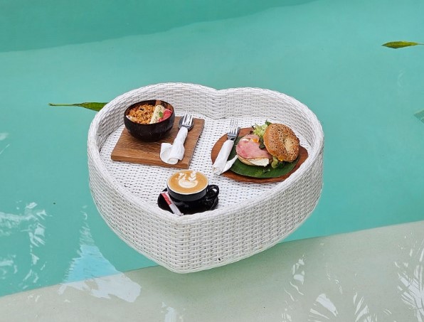 길리섬에서 머물렀던 숙소는 바로 쿠노 빌라. 이곳은 길리섬에서의 여유로운 아침을 만끽할 수 있는 최고의 장소였습니다. 이튿날 날씨도 화창했고, 저의 기분 또한 최고였죠! 무엇보다 특별했던 건, 바로 플로팅 조식이 제공된다는 점이었어요. 아름답게 차려진 플로팅 조식은 아침을 더욱 특별하게 만들어 주었죠.