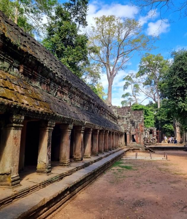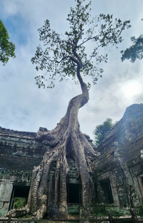 셋째 날, 이른 아침 6시 20분에 일어나 타 프롬 사원으로 향했습니다. 타 프롬은 영화 <툼레이더>의 배경으로 유명하며, 고대 사원이 자연에 의해 점점 파괴되면서도 신비로운 분위기를 자아냅니다.