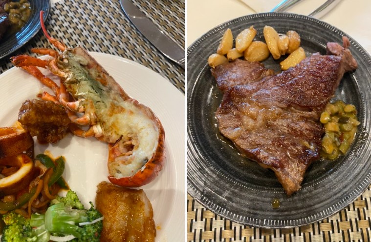 특히 랍스터와 스테이크가 맛있었으며, 다채로운 디저트로 마무리할 수 있었습니다.