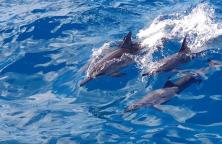 맑은 날씨 덕분에 돌고래들이 배 옆을 따라 헤엄치는 모습을 볼 수 있었고, 그 장면은 정말 감동적이었습니다.