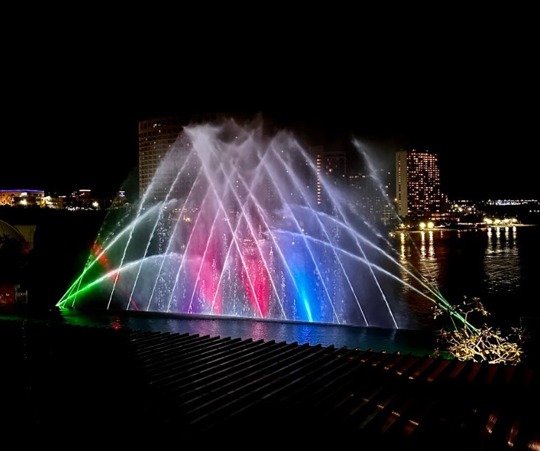 저녁 9시에 진행되는 분수쇼는 음악과 함께 물이 춤을 추듯 움직이며 낭만적인 분위기를 만들어 줍니다. 첫날의 피곤함을 씻어내며 하루를 마무리했습니다.